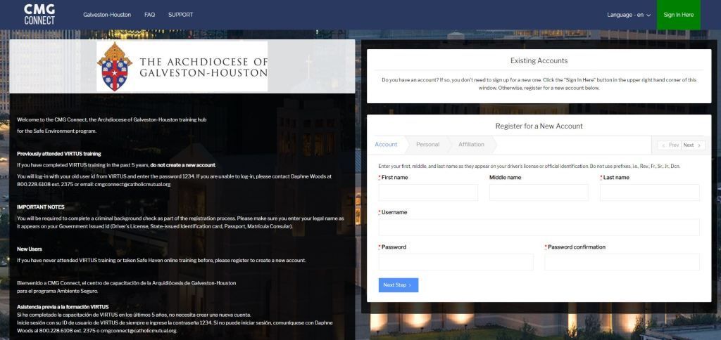The CMGConnect online training replaces the former Safe Environment Program (VIRTUS “Protecting God’s Children”) that was previously offered through our Archdiocese. Individuals are now required to complete all Safe Environment Training online.